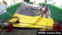В одной из палаток уже месяц пусто. Рядом – лампадки и цветы, а на палатке – фотография Владимира Скрипова. В конце сентября он умер от рака крови, так и не дождавшись своей очереди на операцию за границей.